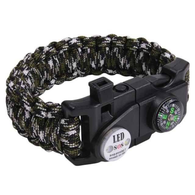 多機能 パラコードブレスレット LEDライト ホイッスル付 [ OD&ブラック&ホワイトカモ ][rev60830]