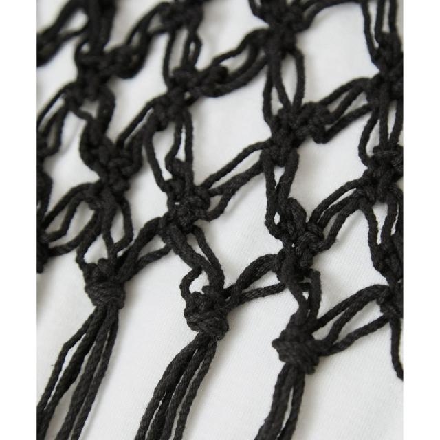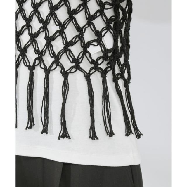 ・タンクトップとセットのトレンドのマクラメ風に編んだかぎ針のニットビスチェ
