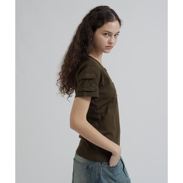 ・手持ち感のある厚手の天竺素材を使用したTシャツ・ミリタリーのファティーグパンツからインスパイヤーされたポケットが両袖に付いています。
