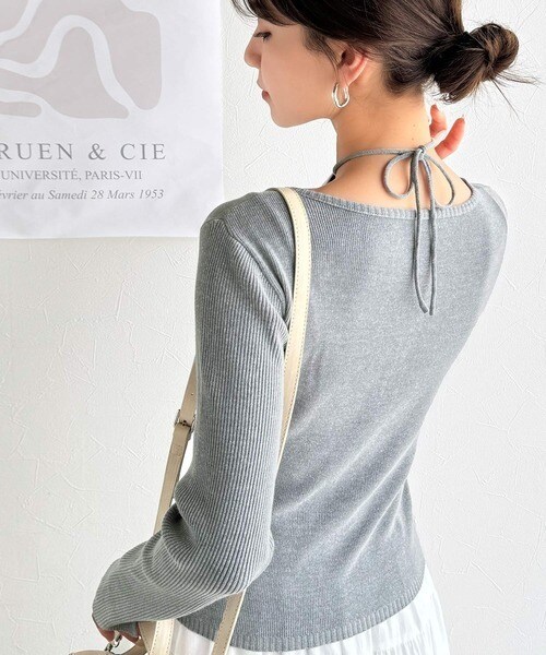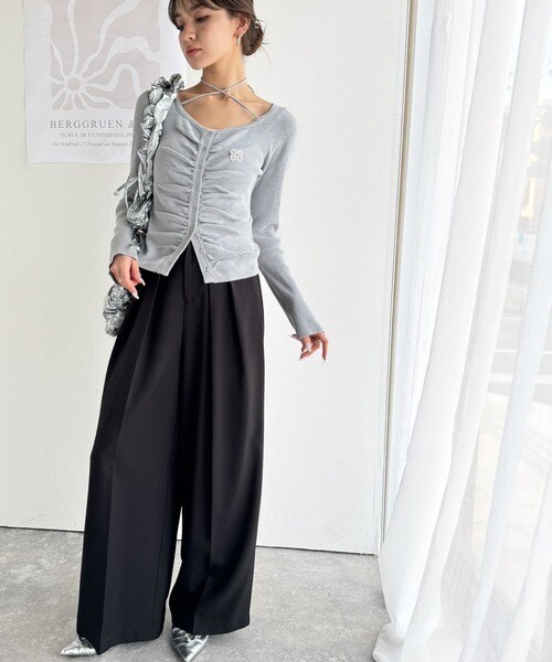 チョーカー紐がアクセントになり、シンプルながらも存在感のあるスタイルに◎