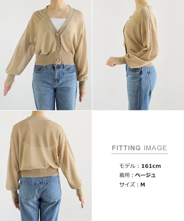 アンドミー(andme)/リネンライク ショート丈 シアー カーディガン