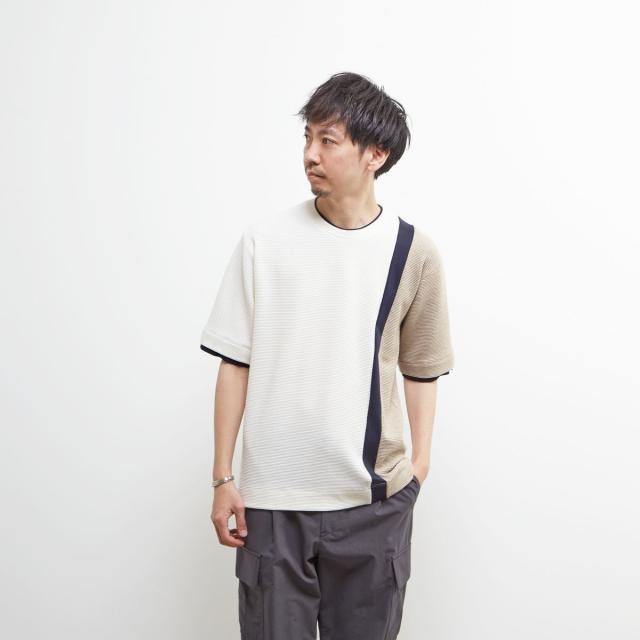 異なる質感の素材と配色で組み合わせた切り替えTシャツです。