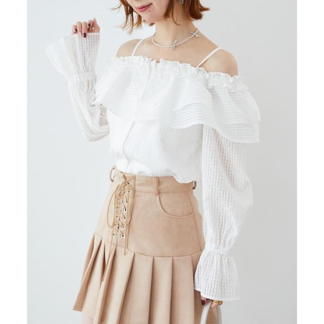 ティアードフリルオフショルブラウス