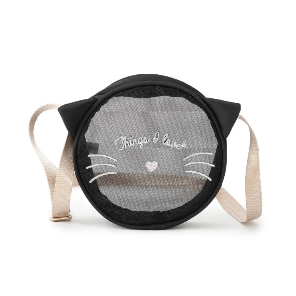 ネコをモチーフにしたラウンド型のメッシュ素材のポシェットに耳を付けたデザインです。