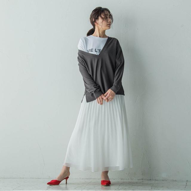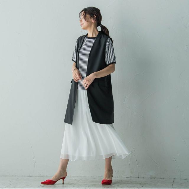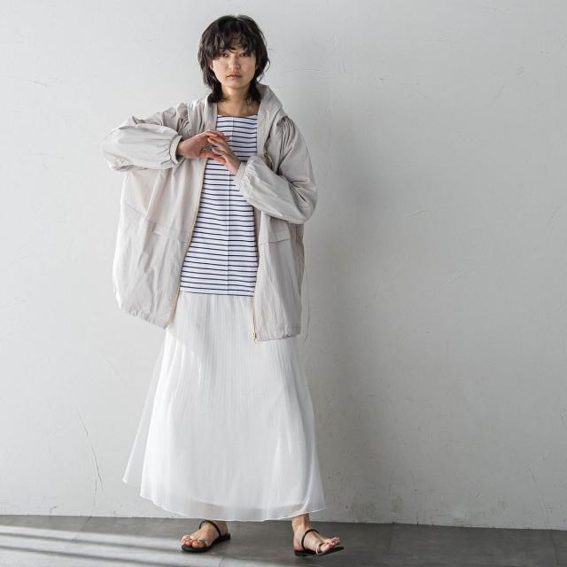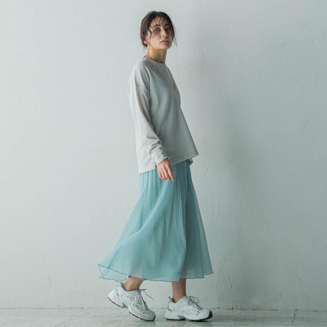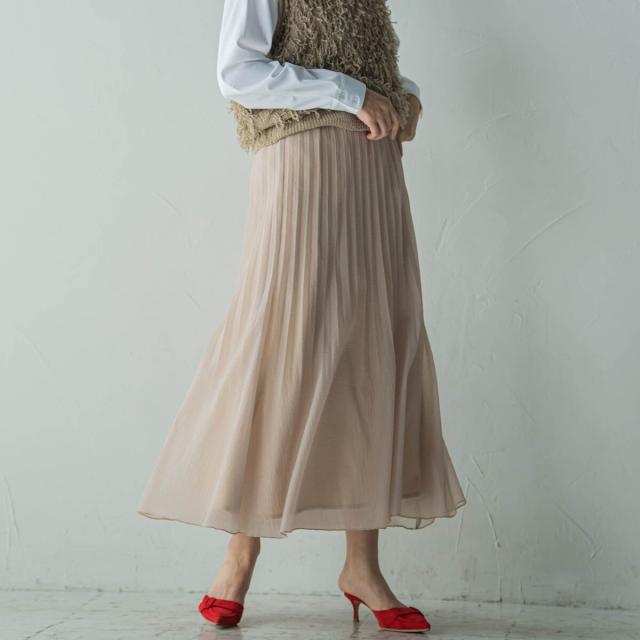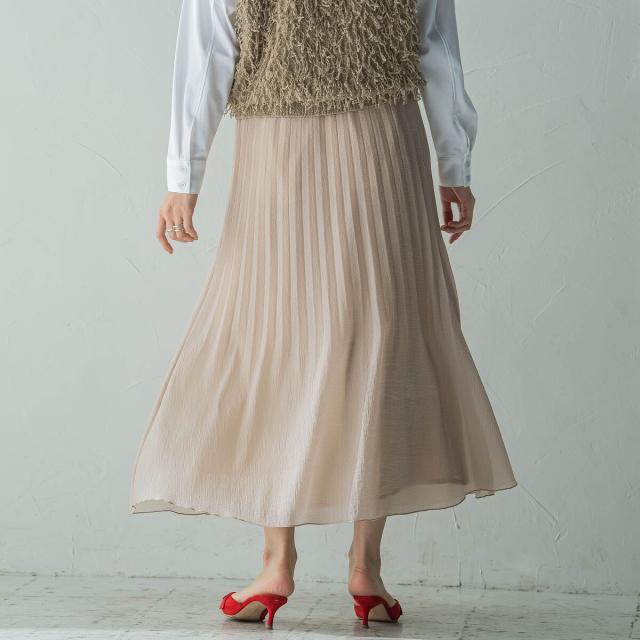 シーズンムードたっぷりの、軽やかなシアープリーツスカート。