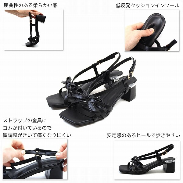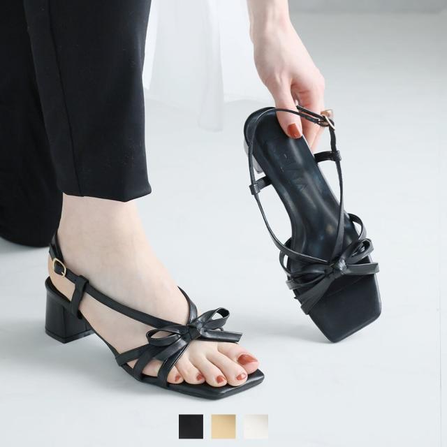 【25春夏新作】スクエアトゥリボンストラップサンダル