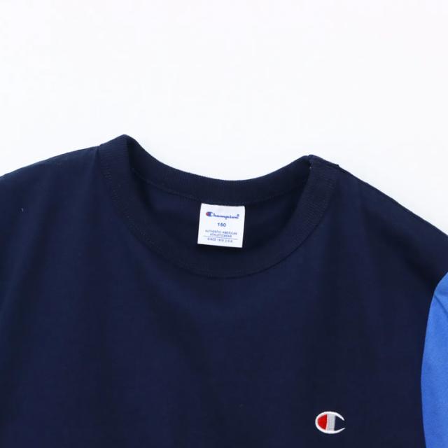 チャンピオン キッズ 半袖 Tシャツ 120-160cm 子供服 Champion 切り替えTシャツ ジュニア 半袖シャツ 子ども キッズウエア タウン 刺繍ロゴ アメカジ こども 男の子 女の子 ブランド アパレル/CK-B323