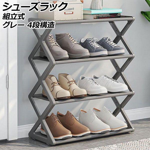 シューズラック グレー 4段構造 デザイン1 組立式 靴で散らかった玄関スペースをすっきり整頓 AP-UJ1114-GY