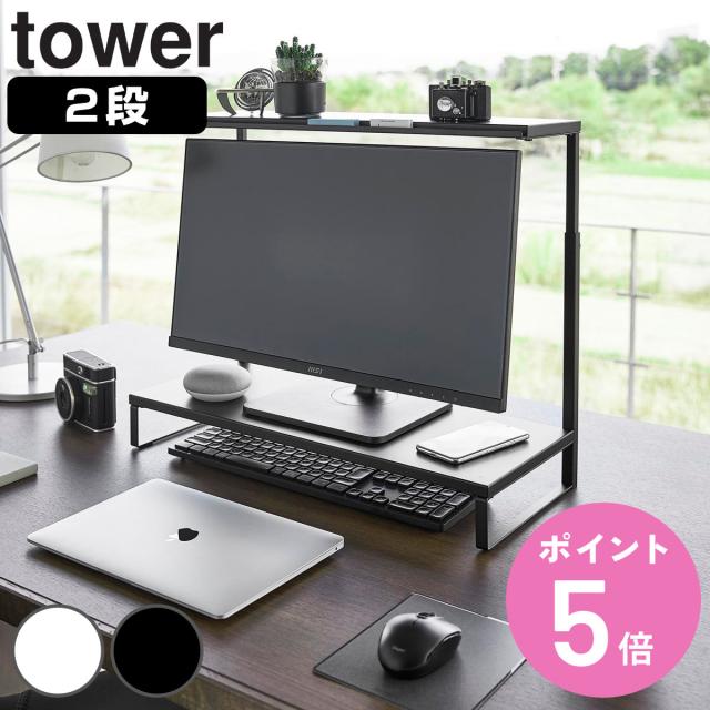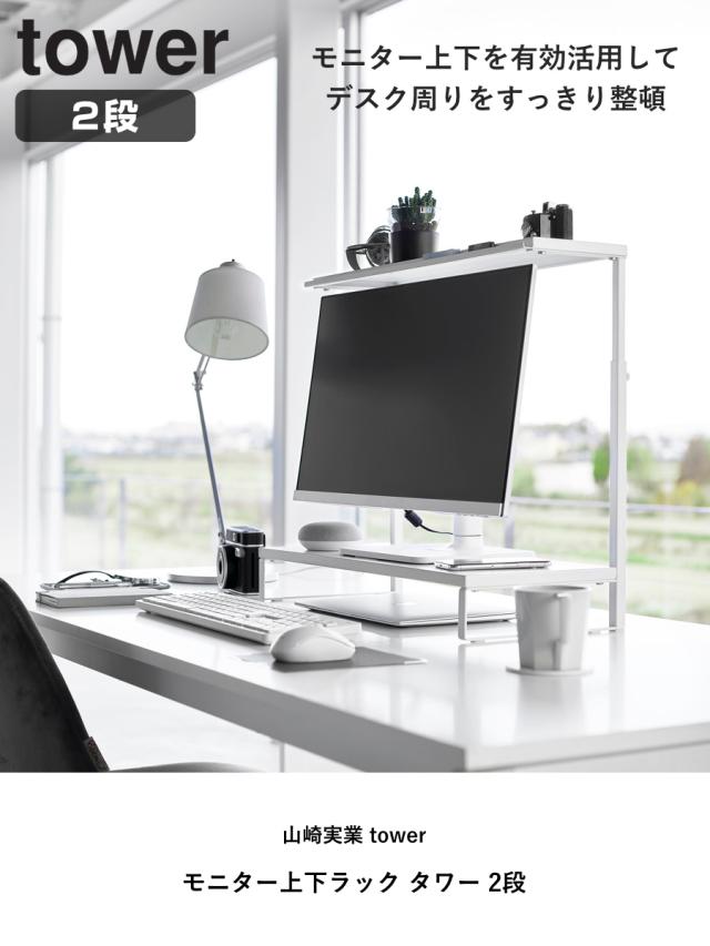 山崎実業 tower モニター上下ラック タワー 2段 ( 4903208013024 タワーシリーズ モニターラック モニター上下 ラック モニタースタンド モニター ディスプレイ ディスプレイラック パソコン台 モニター台 )