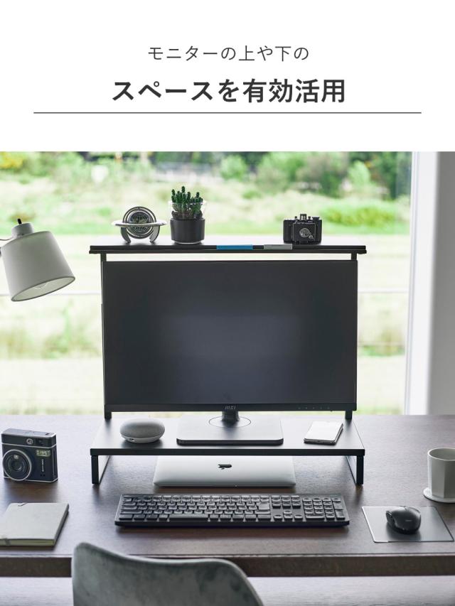 シンプルで使い勝手のいいモニタースタンドです。自宅はもちろん、オフィスなどでも場所を問わずお使いいただけます。キーボードやノートパソコンを下に収納することで、デスクをすっきり広々使うことができます。