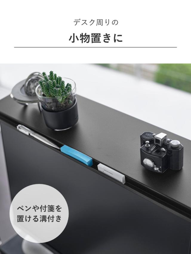 上段の棚はちょっとした小物を収納したり、ディスプレイラックとしてもおすすめです。ペンなどの小物を置くことができる溝付きで便利です。