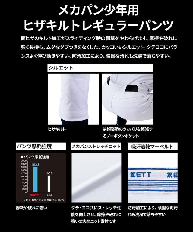 ゼット ユニフォーム パンツ 練習用 試合用 キッズ ジュニア 子供用 少年野球 ソフトボール ベースボール トレーニング キルト 吸汗 速乾 ストレッチ 軽量 防汚 スポーツ 無地 シンプル 白 ホワイト ZETT BU2282NP