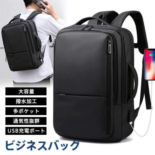 リュックサック メンズ 無地 ビジネスバッグ 充電ポート 大容量 カバン 通勤 旅行 撥水加工 パソコンバッグ チェス