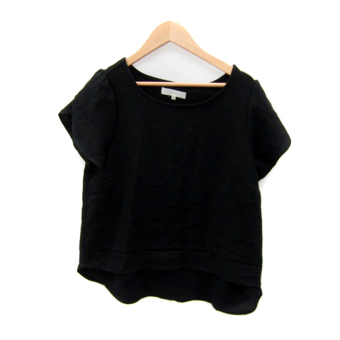 【中古】グローブ grove カットソー 半袖 ラウンドネック 無地 レイヤード風 M 黒 ブラック /SY20 レディース
