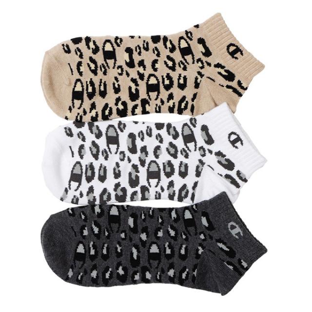 3足組スニーカーイン丈ノンパイル仕様のソックスです。「C ODORLESS(シーオドレス)」による優れた抗菌防臭機能と、履き口部分のリブによる程良いフィット感が特長。足口部分にワンポイントのCロゴを入れ、女性ならではのアニマル柄をChampion(チャンピオン)のフィルターを通してスポーティに表現。ベースカラーが使いやすい定番色なのでコーディネートしやすい上に、個性的なアクセントも添えてくれるソックスです。Cロゴとレオパード柄を組み合わせたオリジナル柄の3色カラーアソート。