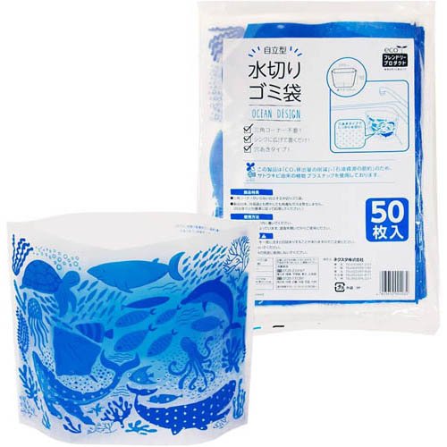 ネクスタ 自立型 水切りゴミ袋 オーシャン柄(50枚)[水切りネット 三角コーナー]