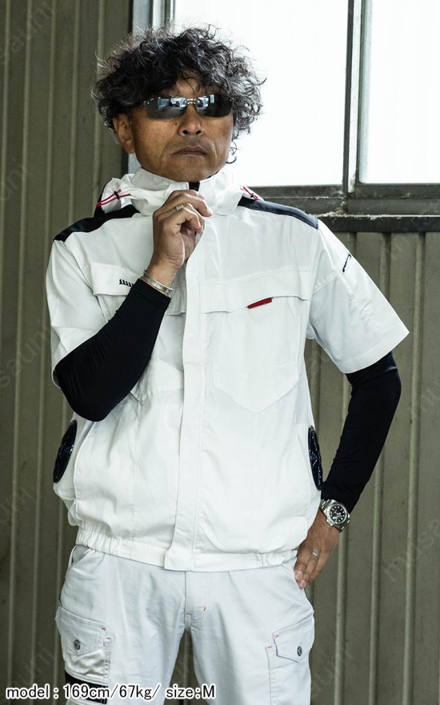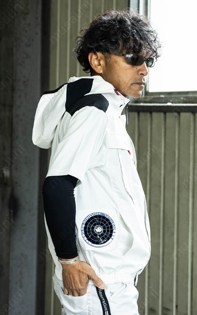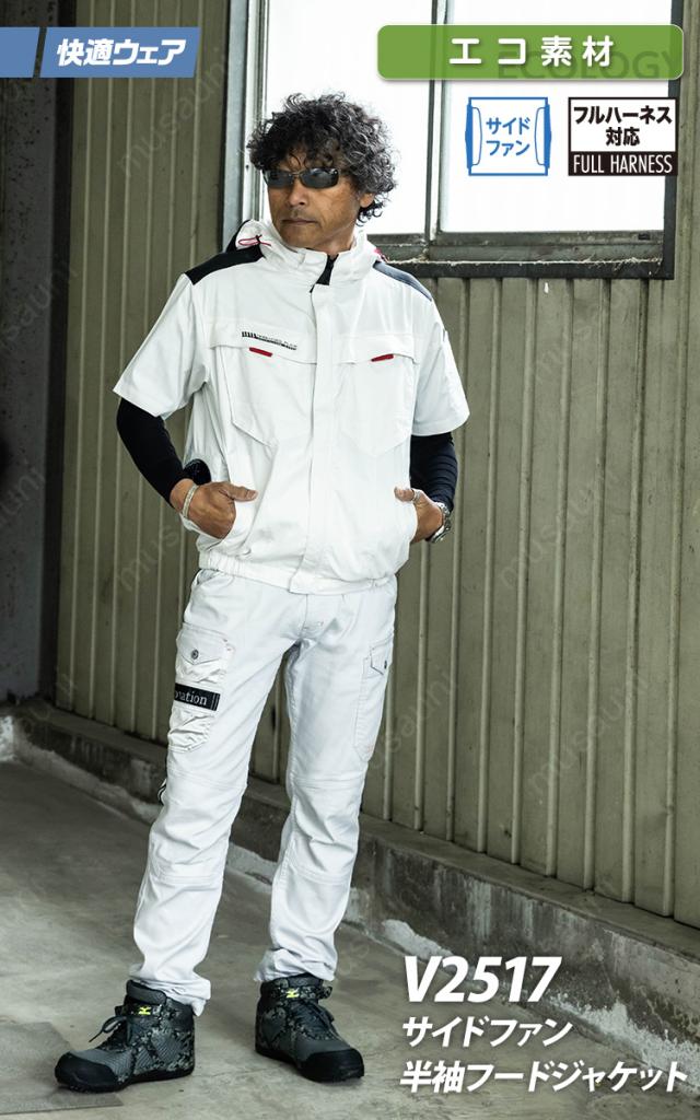 2025年新商品 快適ウェア 空調作業服 サイドファン 半袖フードジャケット 単品 V2517 6L 8L 大きいサイズ エコ素材 エコマーク 再生ポリエステル フルハーネス対応 村上被服 HOOH 春夏服のみ 電動ファン用ウェア 作業服