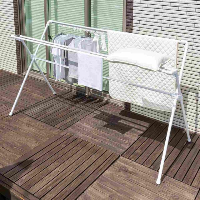 耐荷重20kgなので幅を最大限に広げると、布団4枚を安心して干すことができます。耐久性に優れ長期間使用可能なので、お部屋だけでなくベランダでも活躍します。