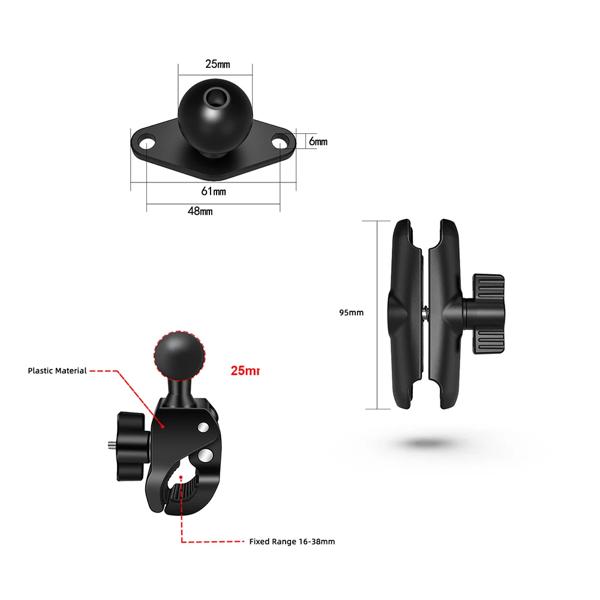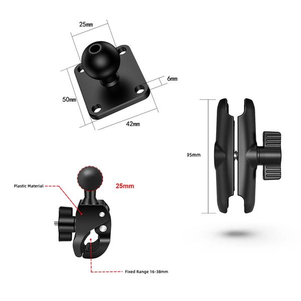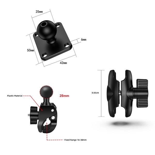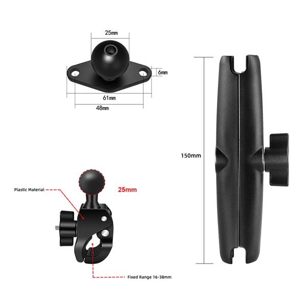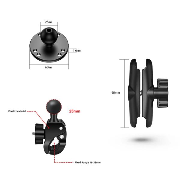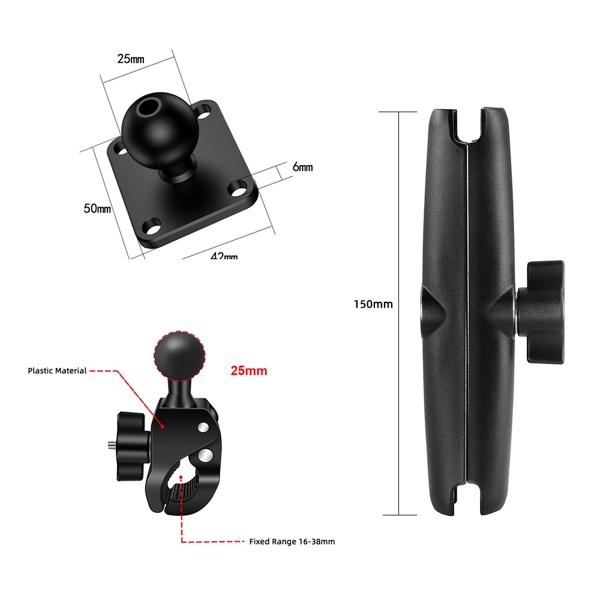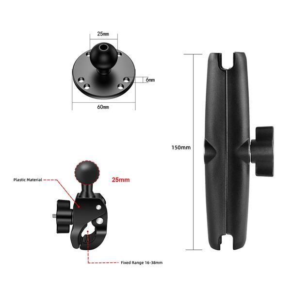 ダブルソケットアームとラウンドAMPSベースアダプターを備えたタフクローマウント、1インチオートバイマウントガジェットエクステンションアーム用