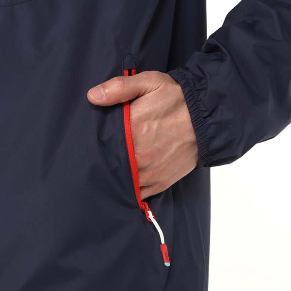 〈デザイン〉 シンプルなデザインでタウンユースとしても着回しやすいウインドブレーカー。軽量でさらっと羽織れて、使わない時はポケットにウェア全体を収納できるパッカブル仕様。肌寒い時期はスウェットなどの厚手のインナーやミドルアウターをレイヤードすることで、長シーズン着回しできます。 〈商品仕様〉 ・撥水加工 ・UVカット ・静電気防止 ・ネック周りと裾はドローコードでフィット感の調節が可能 ・腰部内側のポケットに収納できるパッカブル仕様 ・両サイドにファスナー付きポケット ・ファスナー引手はオール(船を漕ぐための道具)がモチーフ ・左胸に配したワンポイントロゴがアクセント 〈素材特性〉 薄手で軽量性に優れ、さらりとした着心地のポリエステル100%を使用。UVカット機能を備え、撥水加工を施しているため小雨程度であれば安心して着用できます。ランニングやスポーツ、軽ハイキングなどのアウトドア、タウンユースにもおすすめ。 | ||||||