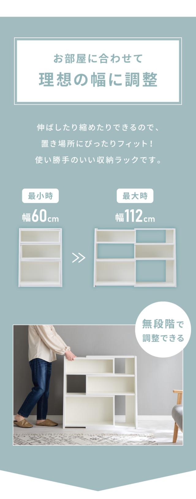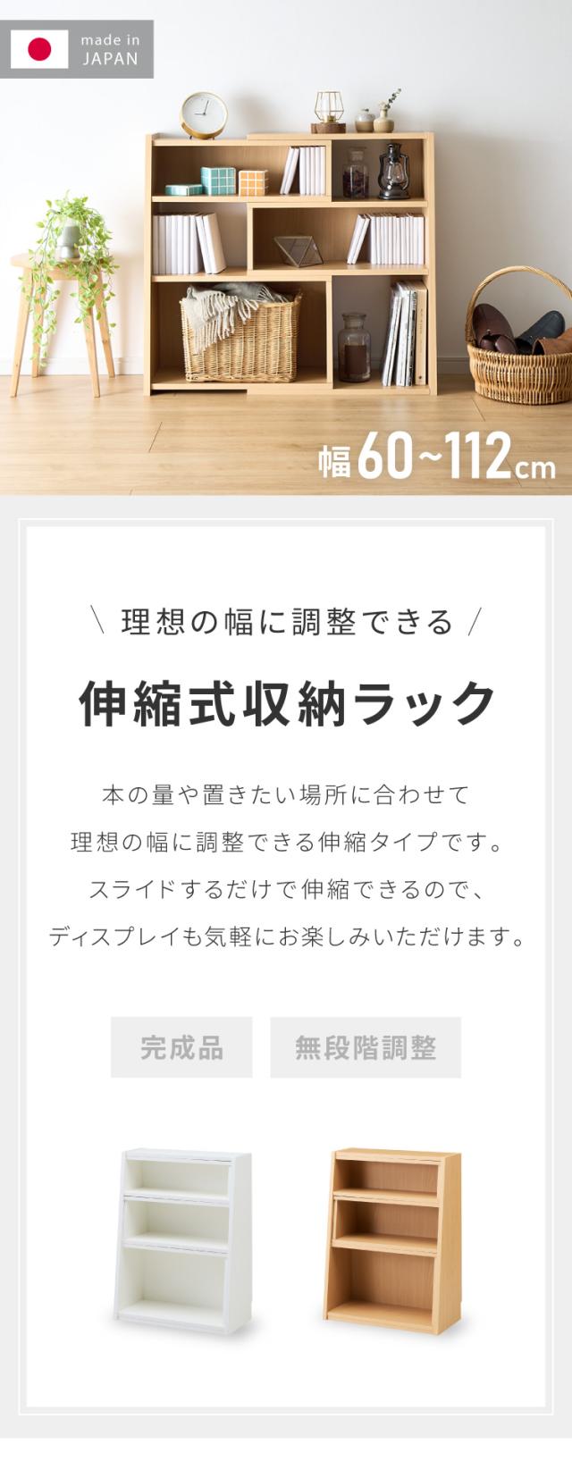 日本製 完成品 北欧風 本棚 60~112cm 伸縮 おしゃれ ブックシェルフ 文庫 家具 収納 リビング 壁 本 棚 ラック 大容量 隙間 すき間 お洒落 ほんだな 伸びる【送料無料】
