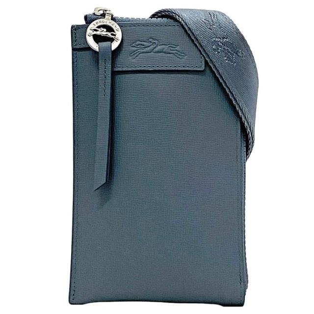 ロンシャン ショルダーバッグ スマホ ショルダー ec-22492 ブルー グレー 美品 レザー 中古 LONGCHAMP L字 ファスナー ポシェット ホルダー クロスボディ 定番 人気 女性 レディース お洒落 青色 灰色 革 シンプル 小さい コンパクト ブランド 本物 鑑定済み