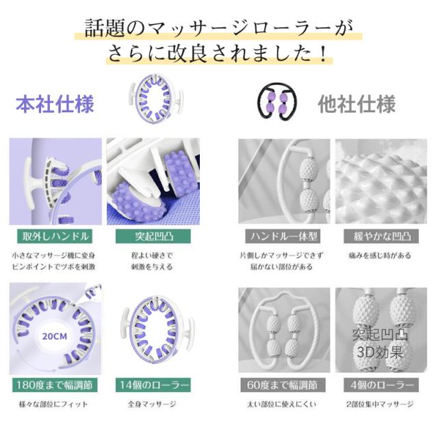 マッサージローラー マッサージ器 360度回転 筋膜ローラー 手持ち 挟む式 健康グッズ ふくらはぎ 肩 首 背中 レバー 太もも 足 トレーニング 母の日 敬老の日