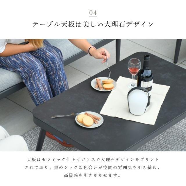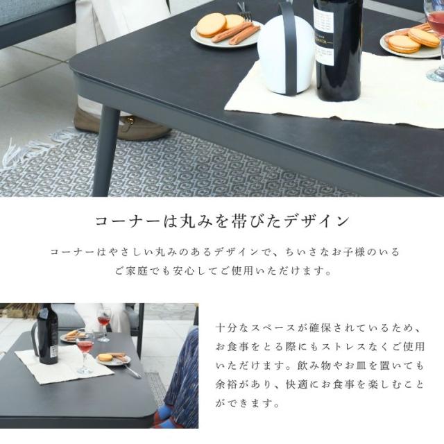 ・テーブル天板はセラミック素材で、傷、熱、汚れに強く、耐久性とデザイン性を兼ね備えています。