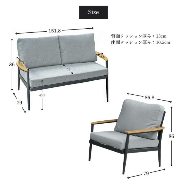 約 横幅151.8×奥行79×高さ86cm(座面高43.5cm)