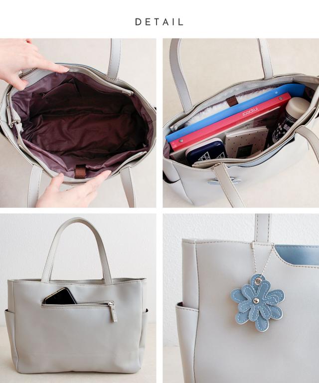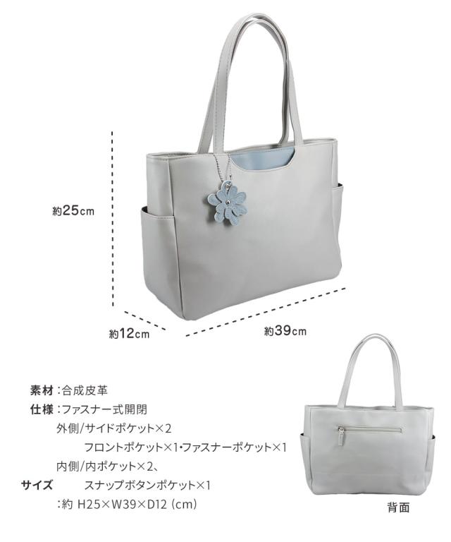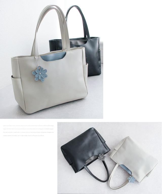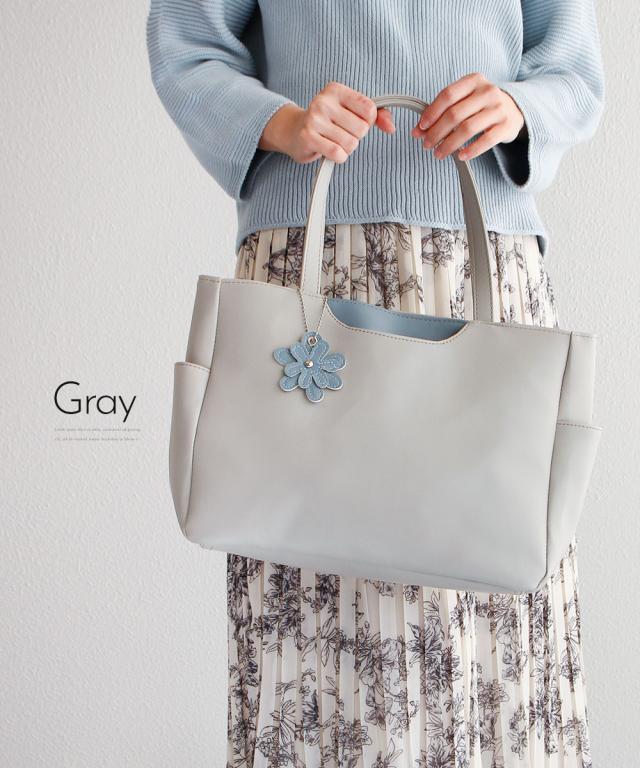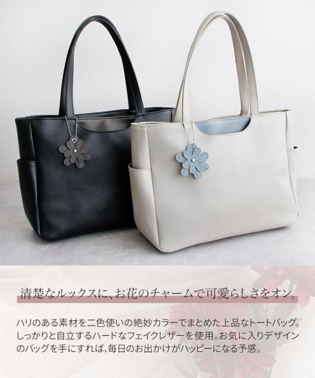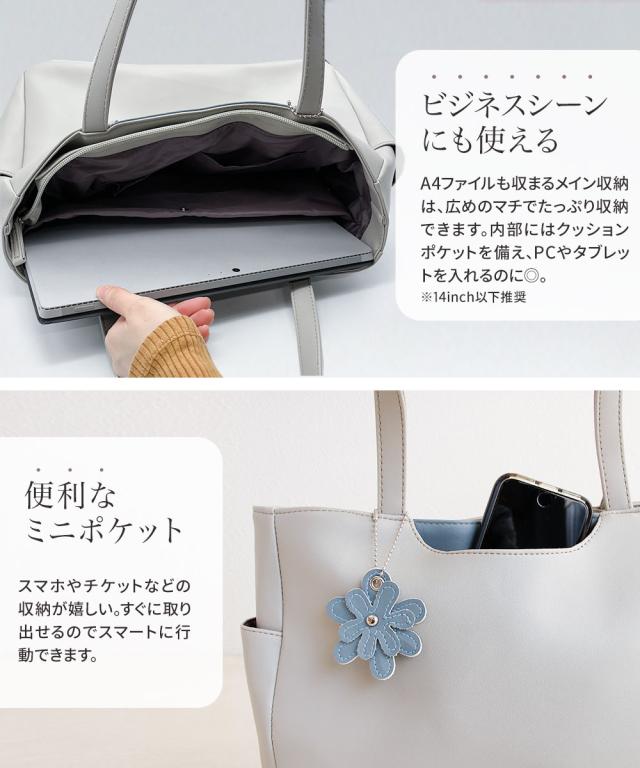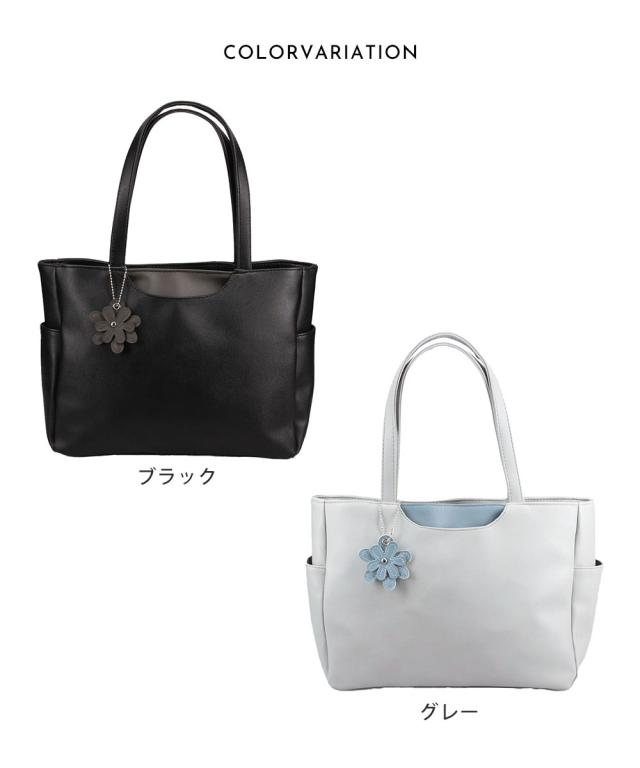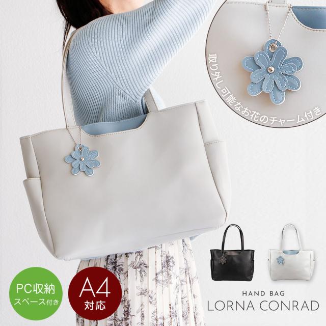トートバッグ レディース 小さめ ミニトート ハンドバッグ ファスナー付き 軽量 軽い 大人 おしゃれ かわいい シンプル カジュアル 通勤 旅行 春 夏 秋 冬 婦人 女性物 PCバッグ パソコン タブレット バッグ 鞄 かばん 花 チャーム付き LORNA CONRAD 黒 ブラック グレー