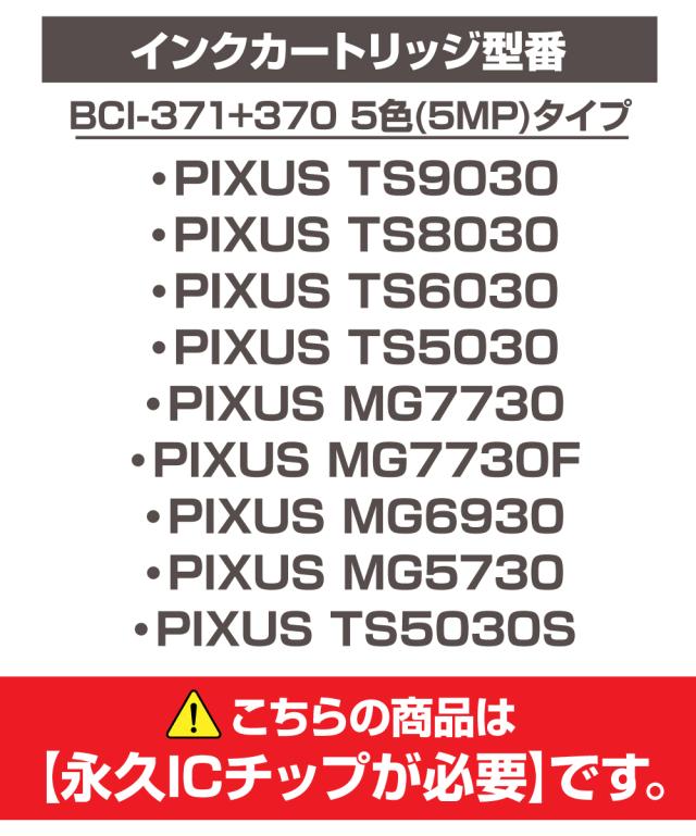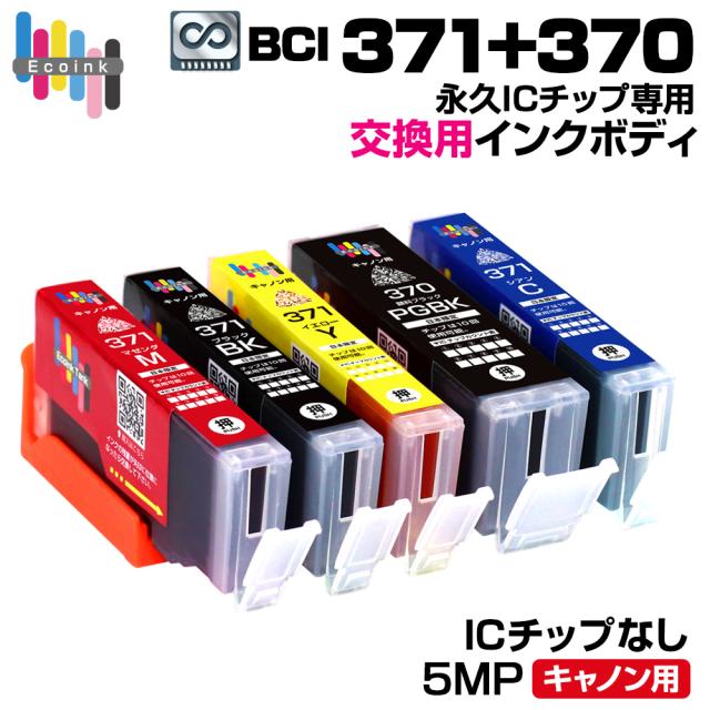 【永久ICチップ専用交換用ボディ】BCI-371+370 / 5MP 大容量 5色セット【こちらの製品だけでは使用できません。】 キャノン Canon エコロジー ゴミ削減 BCI 371 370 5MP PIXUS TS9030 PIXUS TS8030 PIXUS TS6030 PIXUS TS5030 PIXUS MG7730 PIXUS MG7730F PIXUS MG6930