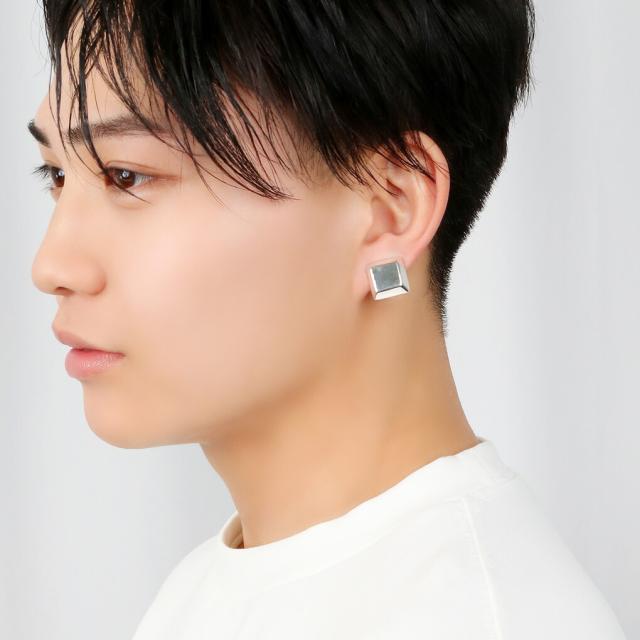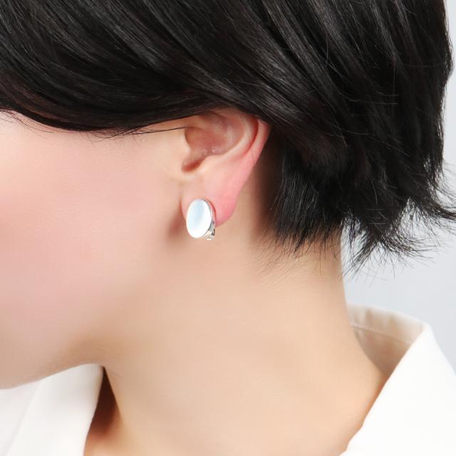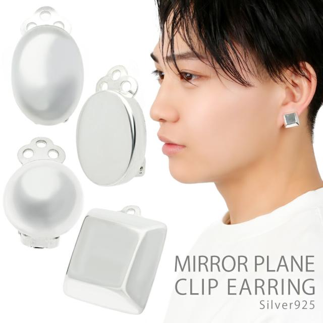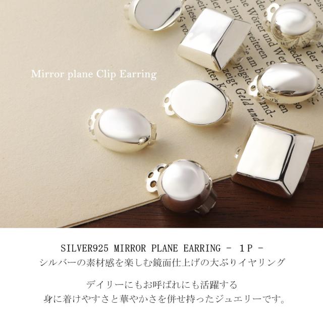 選べる4種 鏡面 白仕上げ イヤリング 1P 片耳用 シルバー 925 地金 ノンホールピアス イヤークリップ ビジュー オーバル ボール スクエア 丸 四角形