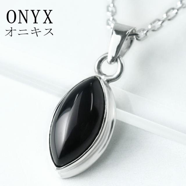 オニキス シルバー ネックレス マーキス チェーン付き ペンダント オニキスネックレス 黒瑪瑙 ブラックオニキス 魔除け 天然石 パワーストーン