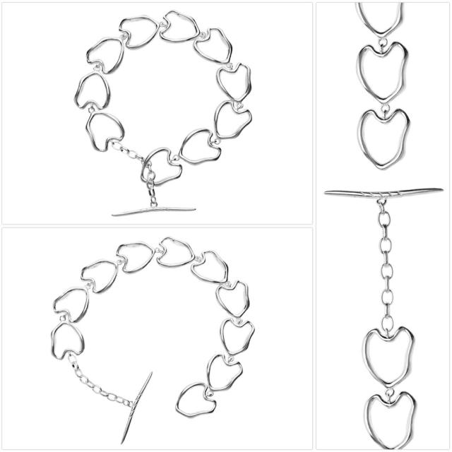 ハート Tバー 調整可能 ブレスレット シルバー 925 大きめ 存在感 デザインチェーン チェーンブレスレット かっこいい きれい 大人 ニュアンス
