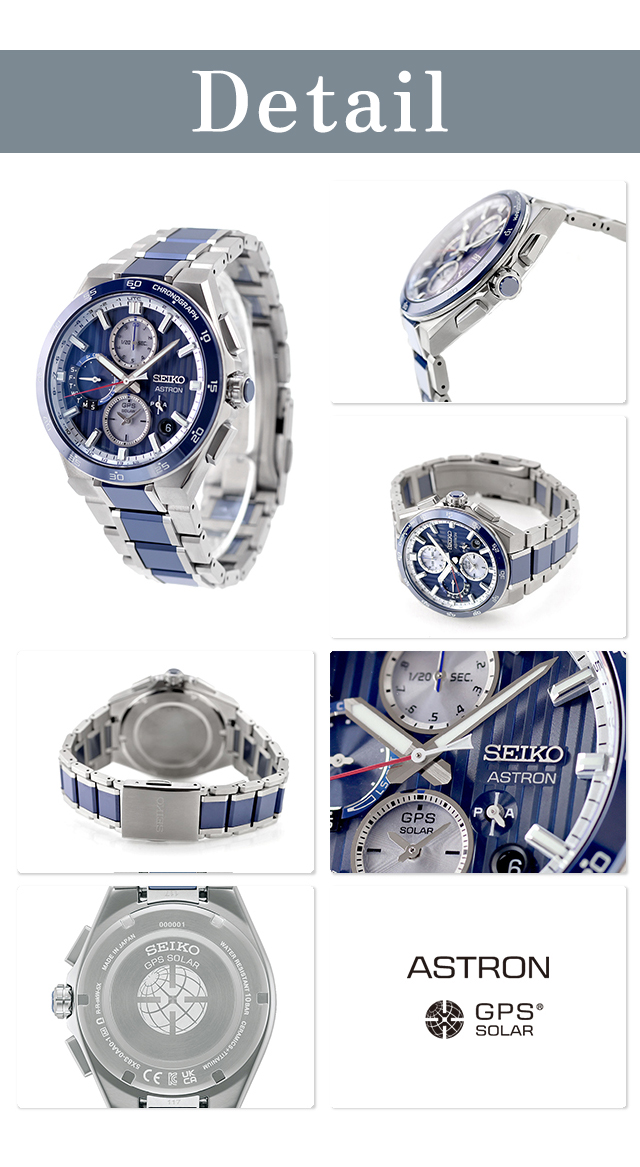 正規品 7年保証キャンペーン 送料無料 セイコー アストロン ネクスター デュアルタイムクロノグラフ コアショップ専用モデル 流通限定モデル チタン クロノグラフ 日本製 メンズ 腕時計 SBXC181 SEIKO ASTRON NEXTER アナログ ブルー ◆ネクスター GPSソーラー デュアルタイムクロノグラフレギュラーモデル初となるブルーセラミックスをベゼル、ブレスレット中駒、りゅうずトップに採用したワンランク上のスポーティデザインのモデルが登場。ケースダイヤルとサブダイヤルの色が異なるコントラストの効いたダイヤルカラーを採用。ブルーとホワイトシルバーのコンビネーションが精悍かつ爽やかな雰囲気を演出。ダイヤルに施した質感の高いダイナミックな縦縞の型打ちパターンとレッドカラーの秒針アクセントが、よりアクティブな印象を醸成。誕生日や記念日のプレゼントにもおすすめです。 発売日:2025年5月発売