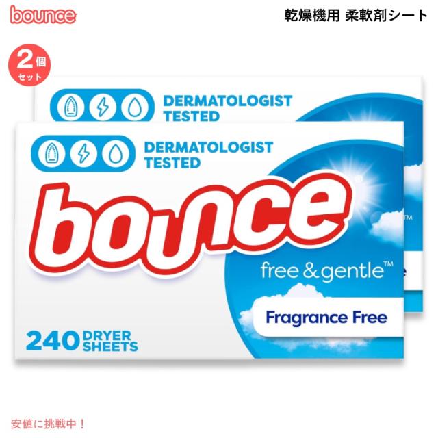 【2個セット】Bounce バウンス 乾燥機用 柔軟剤シート ドライヤーシート 無香料・無着色 [フリー&ジェントル] 240枚 Dryer Sheets Free & Gentle Scent