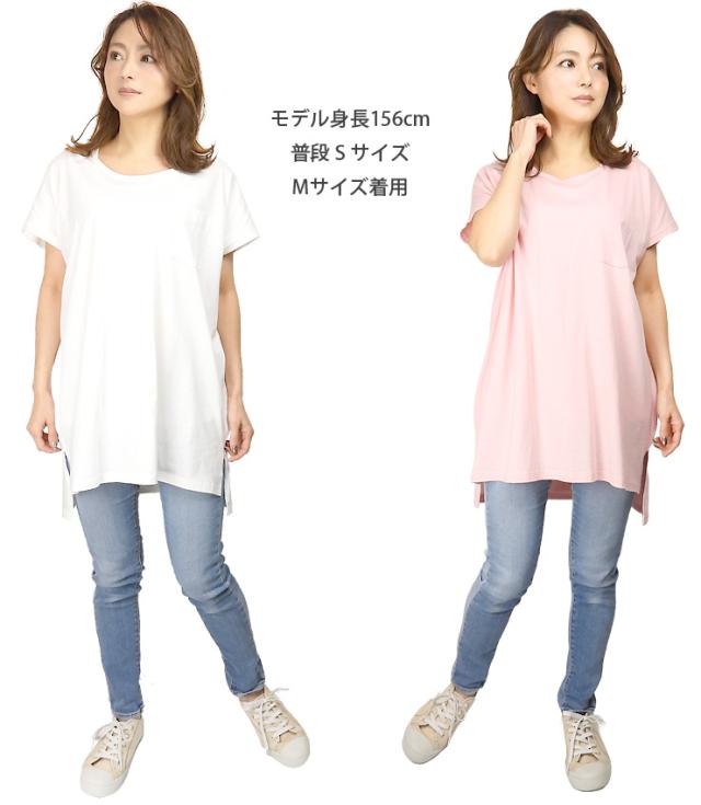 レディース用半袖ロング丈Tシャツ。