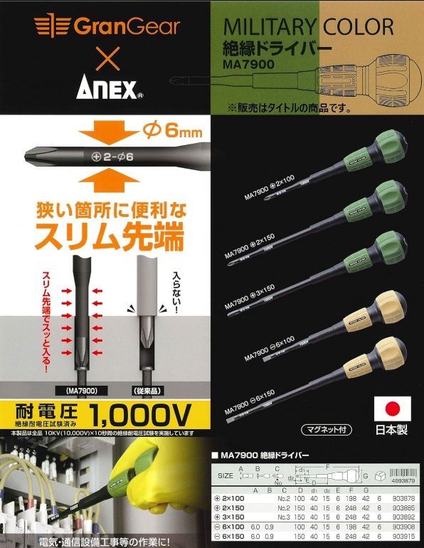 アネックス MA7900 -6x100 絶縁ドライバー デザートカラー ANEX 兼古製作所 903908 小型便 ’