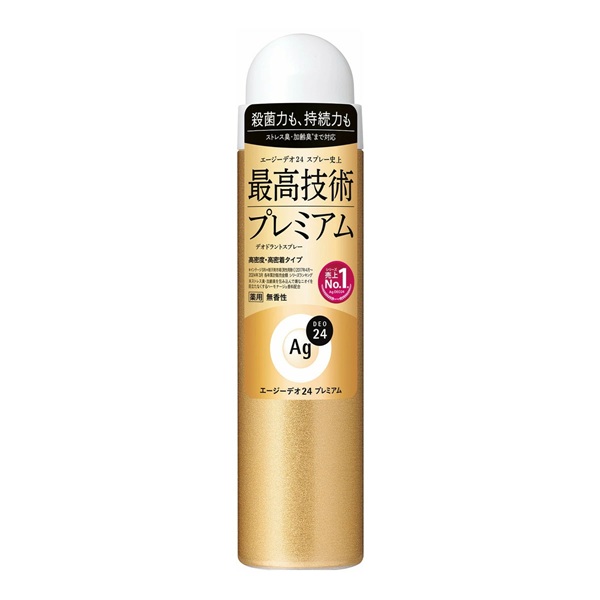 ◆エージーデオ24パウダースプレーから、プレミアムデオドラントスプレー。◆科学の力でもう悩まないプレミアム処方、消臭プラス!汗臭対応。大人のニオイ・ストレス臭ケア。◆汗・皮脂対応。高密度・高密着タイプ。◆大人のニオイ(加齢臭)やストレス臭を包み込んで嫌なニオイを目立たなくするハーモナージュ香料配合。無香性