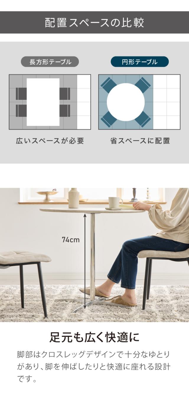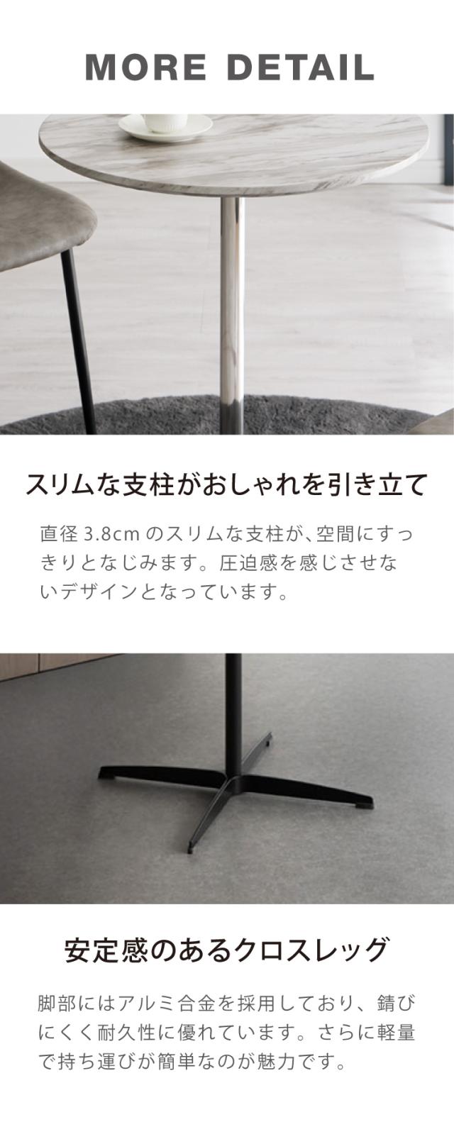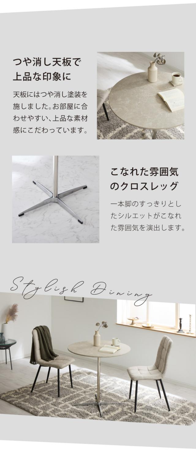 2人用 3人用 おしゃれ 白 黒 スタイリッシュ 高さ 74cm 小さめ ナチュラル カフェ風 デザインテーブル 丸形 グロッシー センターテーブル リビングテーブル 机 デスク 新生活 食卓テーブル 2人掛け おうちカフェ キッチン パソコン 海外風 滑り止め付き 耐高温 耐腐食 低ホルム 耐荷重100kg サンドベージュ マーブルホワイト 艶消し つや消し マット 面取り加工 スチール スチール脚 1本脚 Xベース脚 X字脚 補助テーブル テーブル table