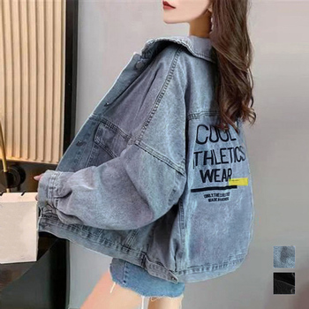 デニムコート 体型カバー 春秋冬アウター 英字プリント ゆったりGジャン オシャレ カジュアルトップス 20代30代ライトアウター長袖 着やせ ジージャン ストリート 羽織り
