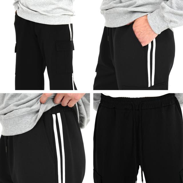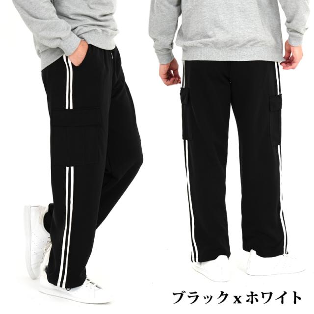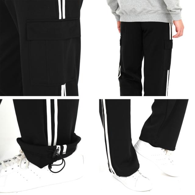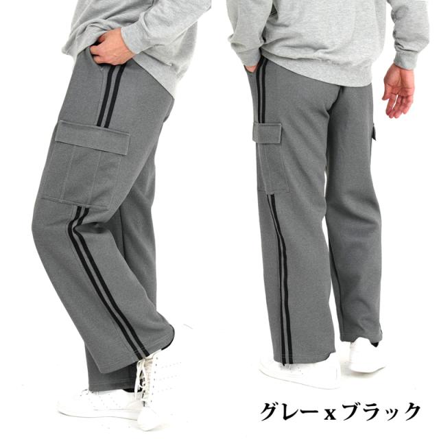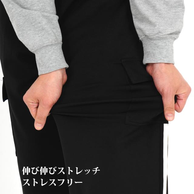 ジャージ メンズ ストレッチ 適度な厚み カーゴパンツ ワイドパンツ ワイドシルエット 裾 ドローコード スポーツ カジュアル 伸縮性 速乾性 スリム シルエット ゴルフ ブラック グレー ネイビー