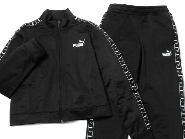 【送料無料】女児 ジュニア PUMA/プーマ 長袖 ジャージ スーツ 上下組 ポリ 裏トリコット ライン ロゴ 子供服 女の子 140cm 150cm 160cm td-0898b-bk