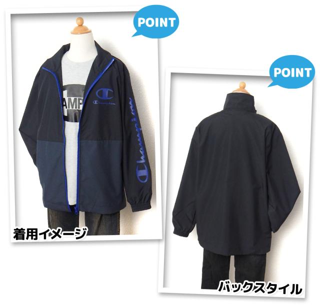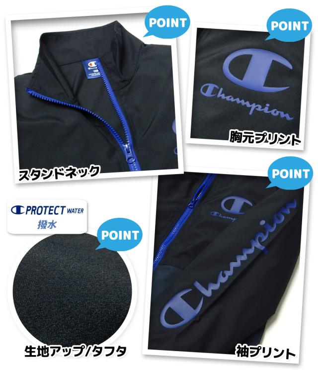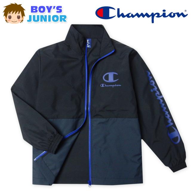 【送料無料】男児 ジュニア タフタ パーカー ジャケット Champion/チャンピオン 撥水 フルジップ アウター 軽量 子供服 男の子 140cm 150cm 160cm td-0880c-bk【メール便対応】