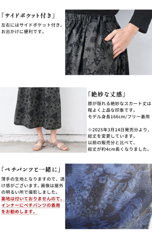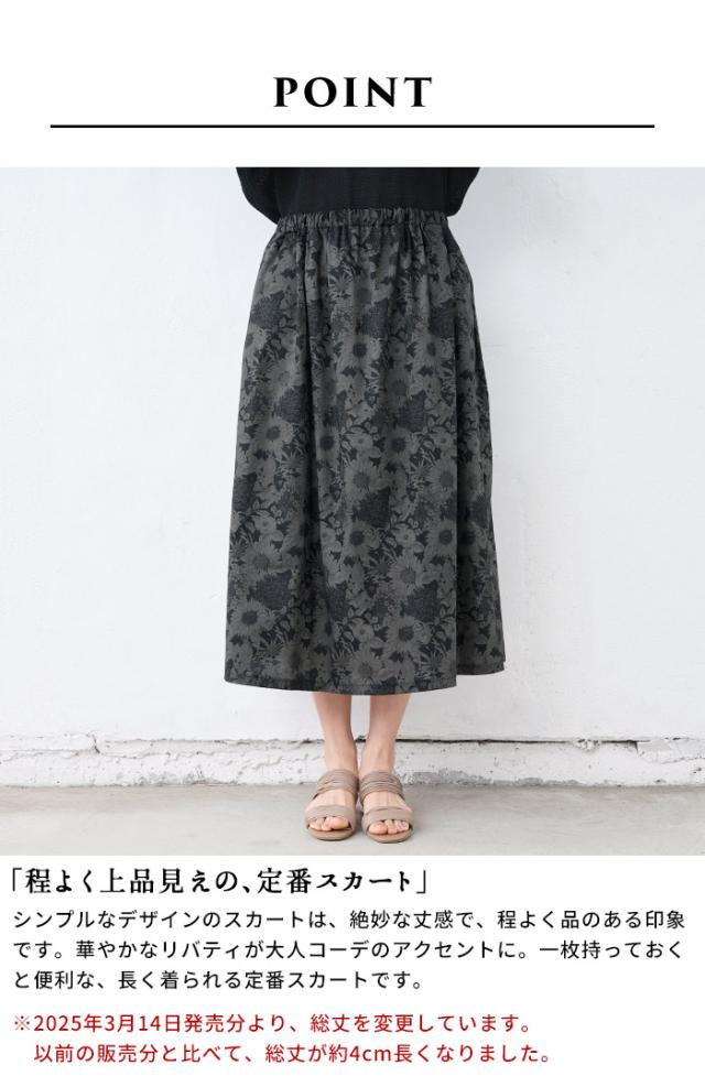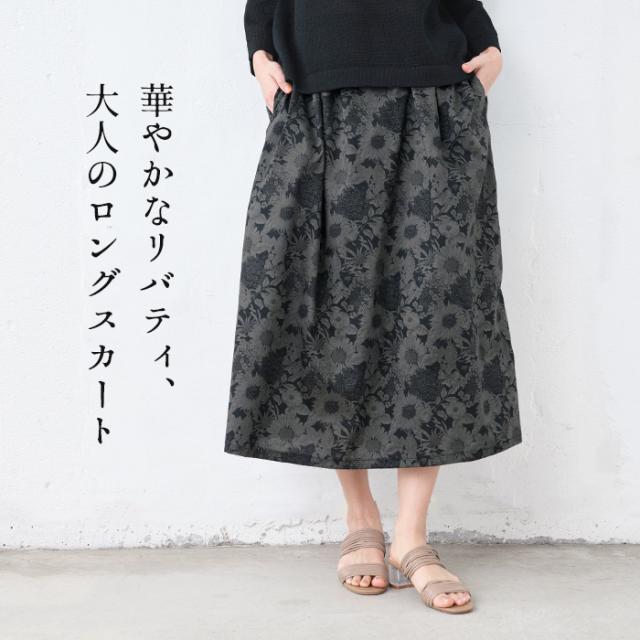 リバティプリント スカート / 日本製 スカート レディース コットン 春 夏 花柄 40代 50代 60代 30代 女性 リバティ LIBERTY ウエストゴム コットン100% 綿100% ロング ひざ丈 ミモレ丈 春夏 華やか 上品