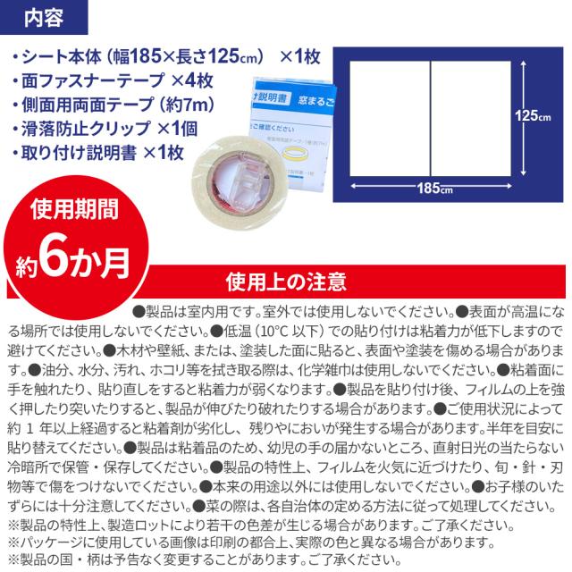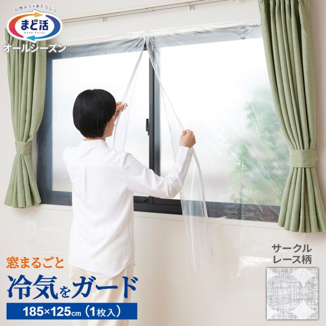 窓 遮熱 まど活 窓まるごと冷気ガードシート 腰高窓用 (幅185×長さ125cm) サークルレース 1枚入 H-178 | 断熱 カーテン 暑さ 寒さ 対策 省エネ 遮光 目かくし 日よけ 節電 エコ 抗菌 冷暖房 効率UP 窓枠に貼る 腰高窓