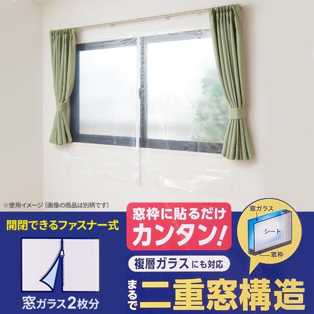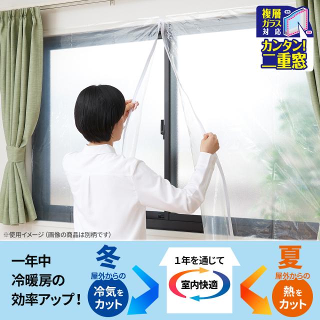 窓枠に貼り付けて二重窓構造にし、夏は屋外からの熱をガード、冬は屋外からの冷気をガードするシート。