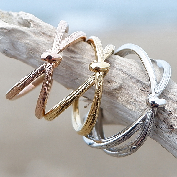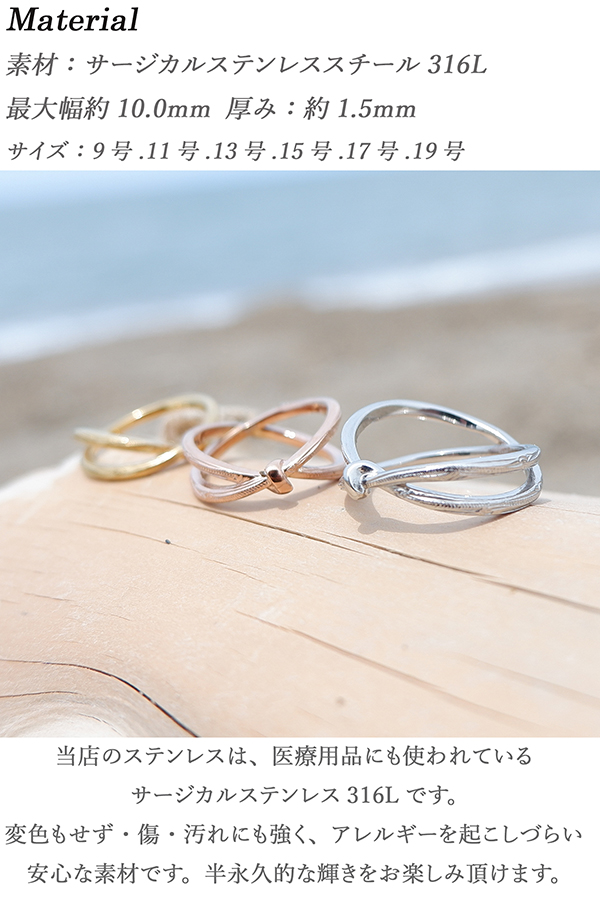 ハワイアンジュエリー リング 指輪 リボン クロス 2連風 スクロール 波 記念日 誕生日 プレゼント ギフト サージカル ステンレス インスタ sale