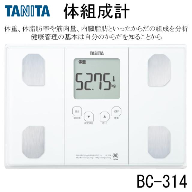 送料無料 タニタ 体重計 体組成計 BC-314 パールホワイト 電池式 乗るピタ機能搭載 体重計 体重測定 50g単位 立てかけ収納対応