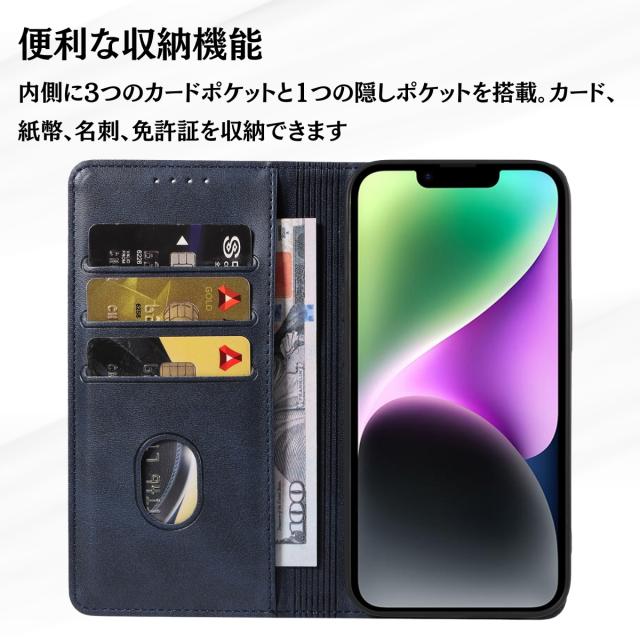 【カード収納】内側にはカード入れとフリーポケットがつき、名刺や定期券の収納に優れているアイフォン ケースです。普段の生活に便利をもたらします。